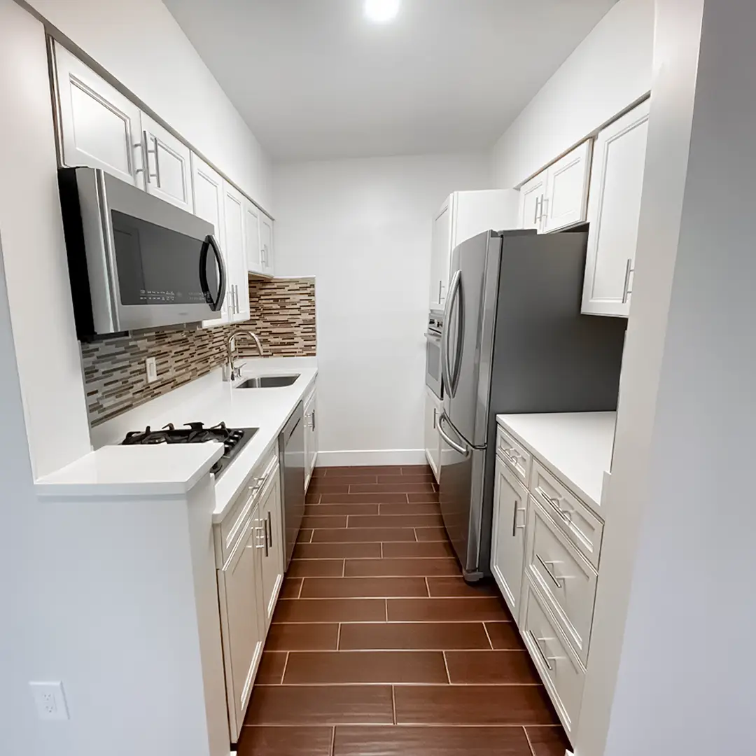 Good lighting enhances both aesthetics and usability. Combine overhead lighting with under-cabinet fixtures and pendant lights over islands. Pair this with a light color palette and reflective surfaces to make the kitchen feel larger, cleaner, and more inviting.